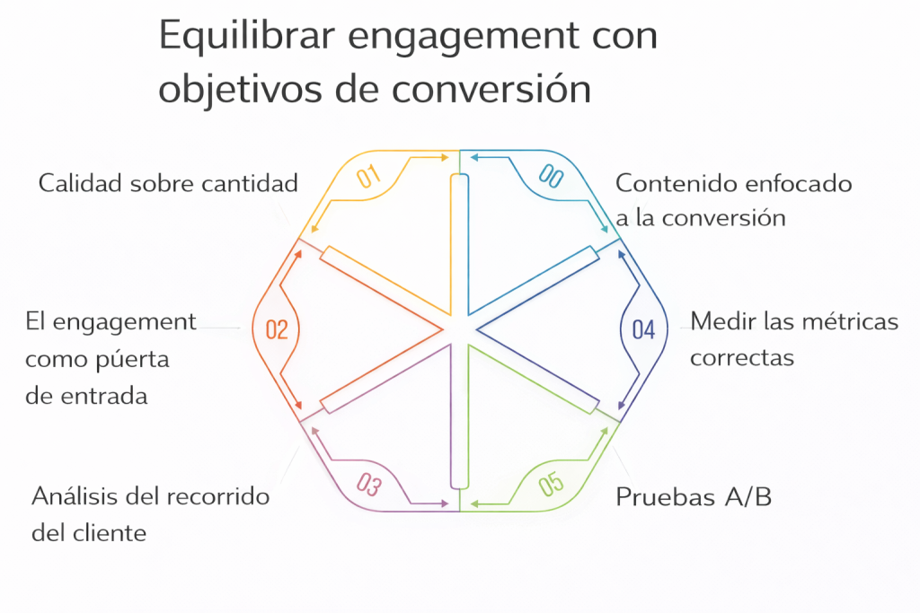 La diferencia está en que el engagement mide atención, mientras que la conversión mide acción. Si tu contenido no está diseñado para mover a la audiencia hacia una decisión, el crecimiento se queda en superficial y no impacta tu negocio.