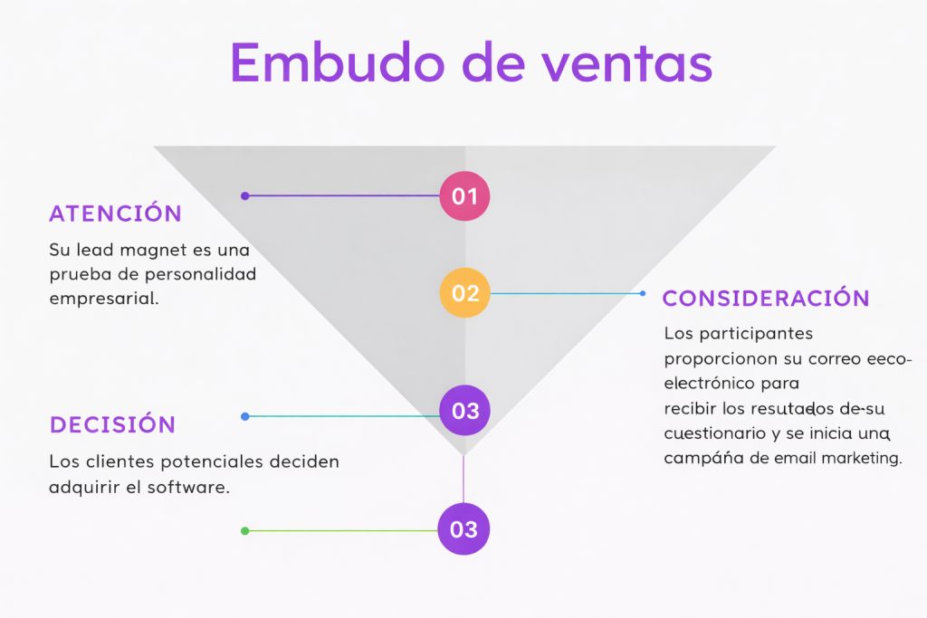 El contenido por sí solo no genera ventas si no está conectado a un proceso estratégico. Necesitas un sistema que transforme la atención en intención y la intención en acción. Aquí es donde entra el concepto de embudo de ventas digital.